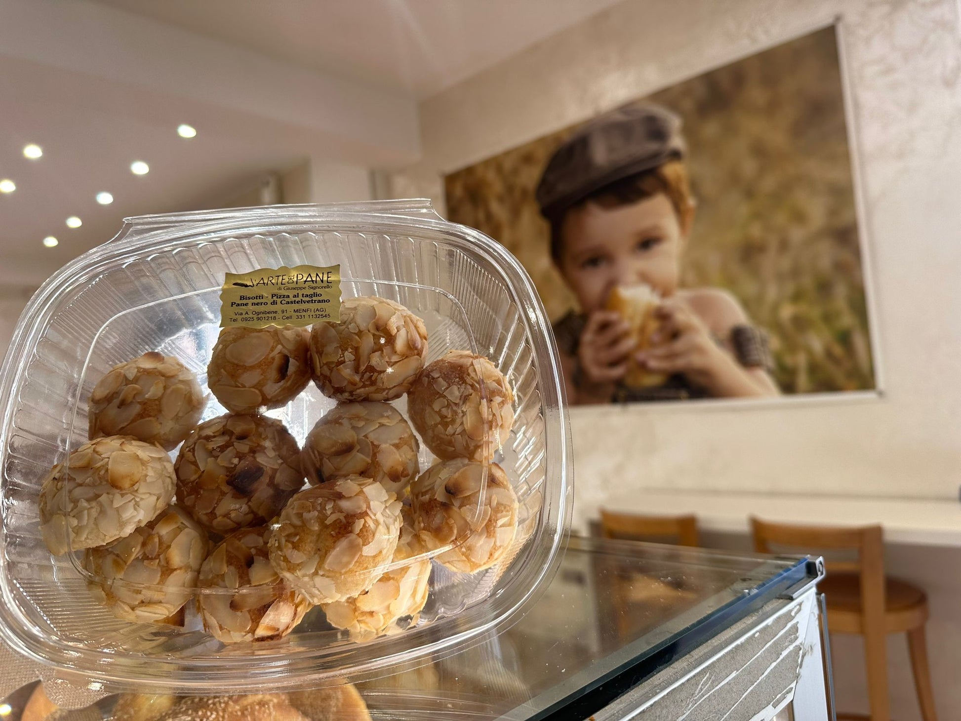 Biscotti alle mandorle con frutta candita e pistacchi. Ingredienti: Mandorla, Zucchero, Albume, Frutta candita, Cocco, Zuccata, Aroma di mandorla amara, Pistacchio, Limone